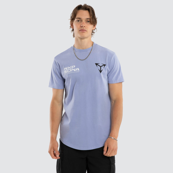 The Finest Dual Curved Tee in Pigment Thistle Down from NXP is a high-quality piece, designed with a slim fit and a long length with a curved hem.