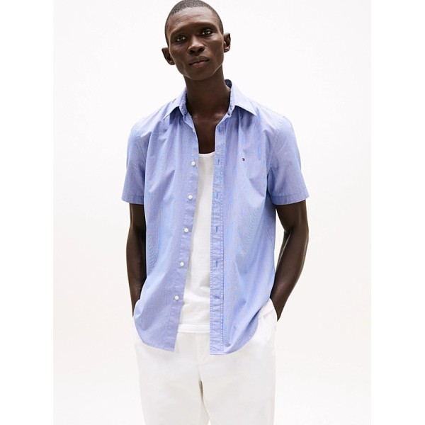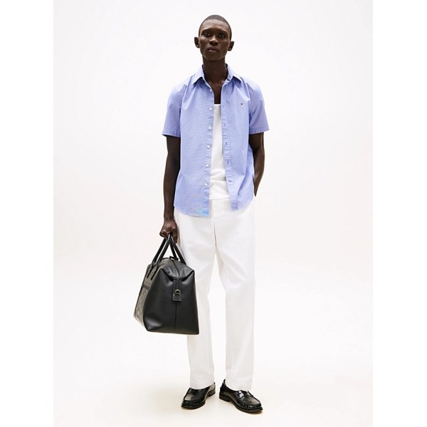 Tommy Hilfiger Flex Poplin Houndstooth S/S Shirt Wedge Blue