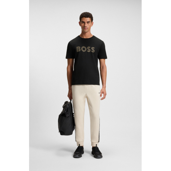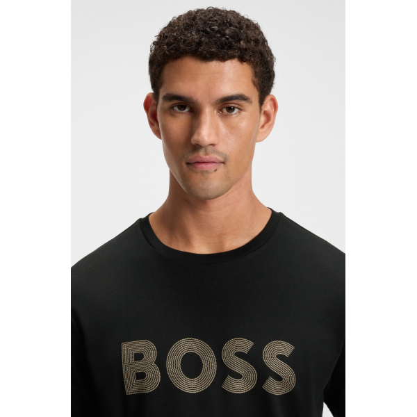 Boss Tee Logo Future Pima-cotton T-shirt with gloss logo Black